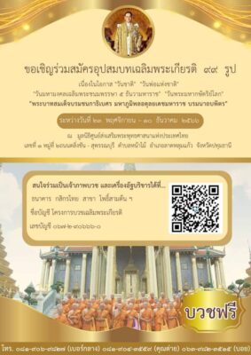 ขอเชิญร่วมสมัครอุปสมบทเฉลิมพระเกียรติ ๙๙ รูป